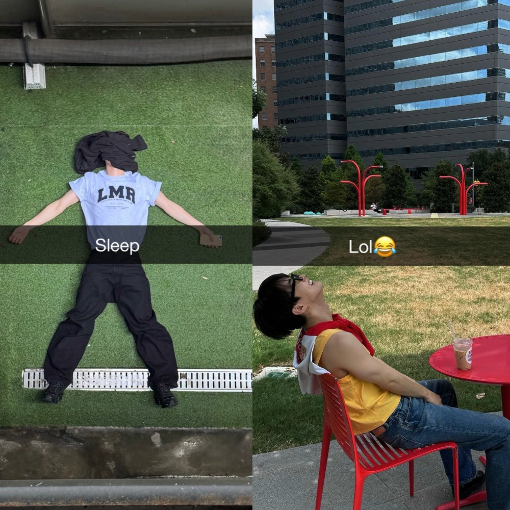 더보이즈 큐(Q) 역시 스냅챗을 활용해 본인의 이미지를 재치 있게 꾸미며 팬들과 소통하는 모습을 보여줬어요. 단순한 셀카를 넘어 다양한 기능으로 색다른 무드를 연출했는데, 특히 스토리 기능을 활용해 검은 배경 위에 단순한 텍스트를 얹은 컷은 — 바로 알 사람은 아는 스냅챗만의 시그니처였죠 👀 |